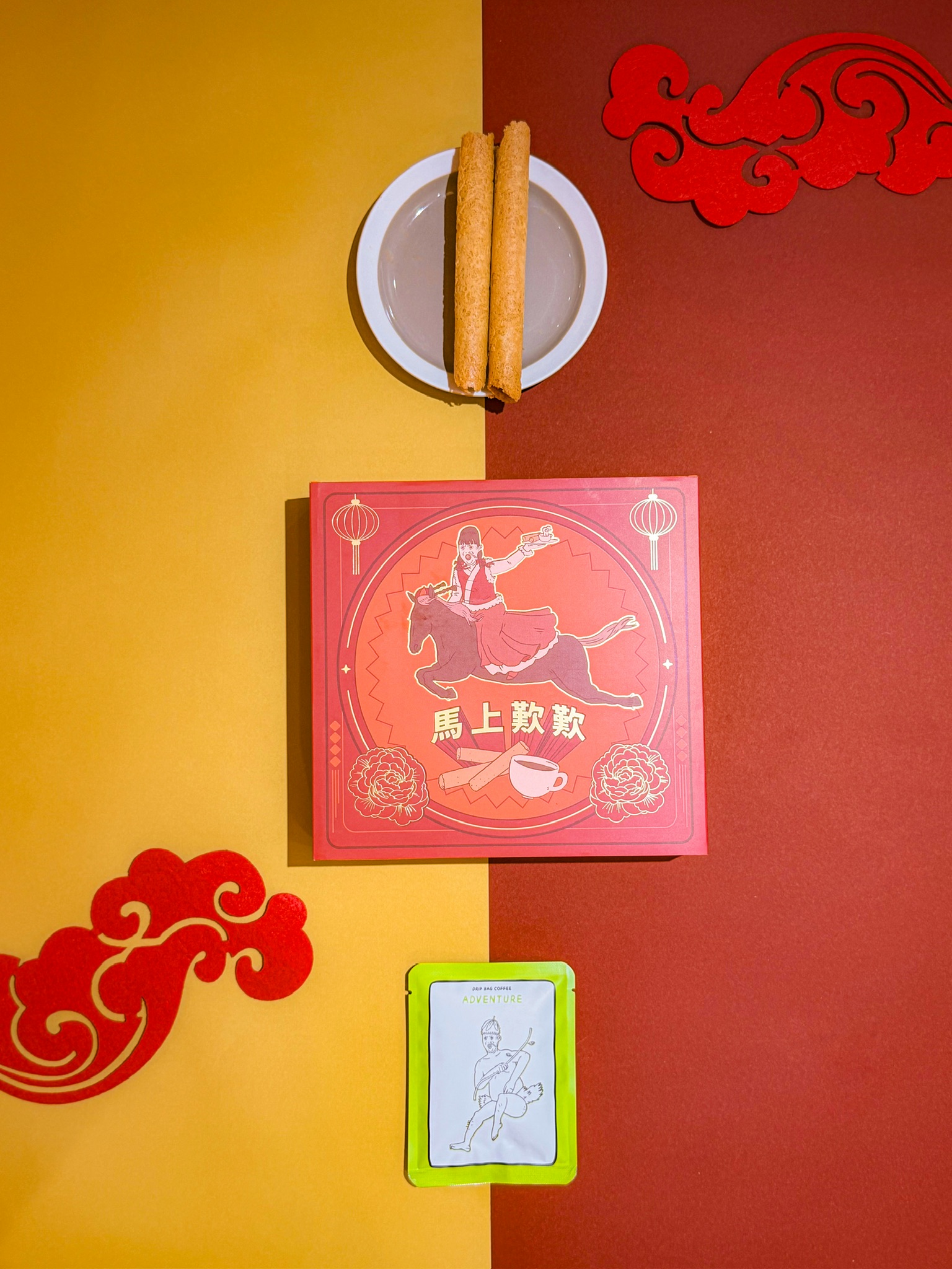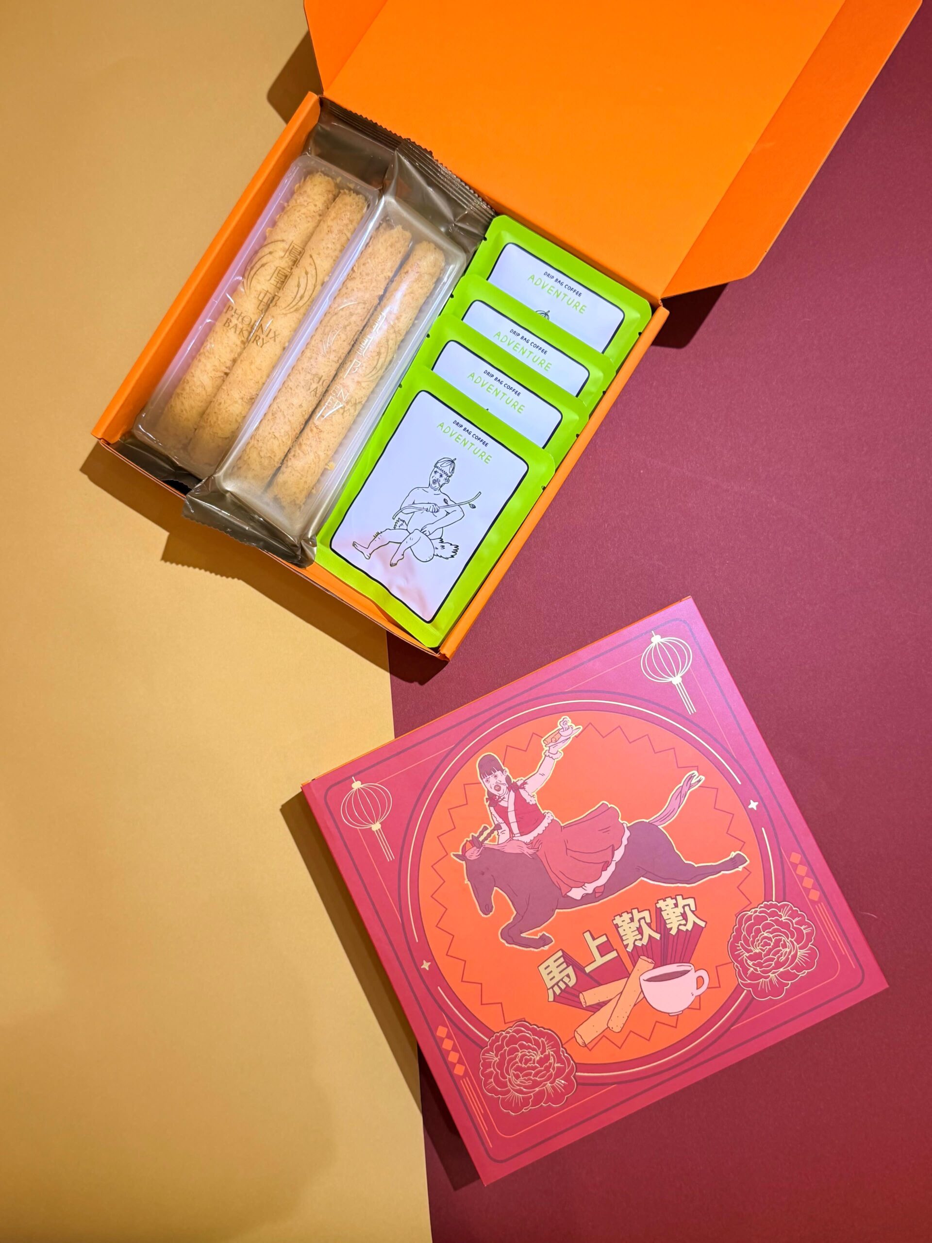 每個禮盒內有4包「鳳凰邨」的原味蛋捲和4包「咖啡呀唔該」精選今季最當造的Adventure Drip Bags☕️